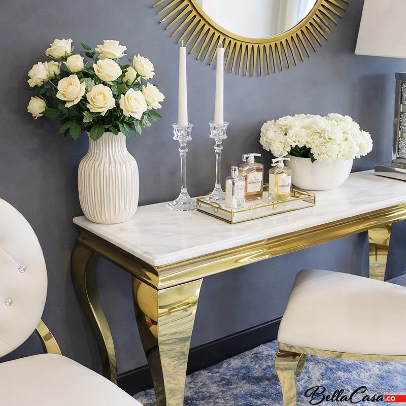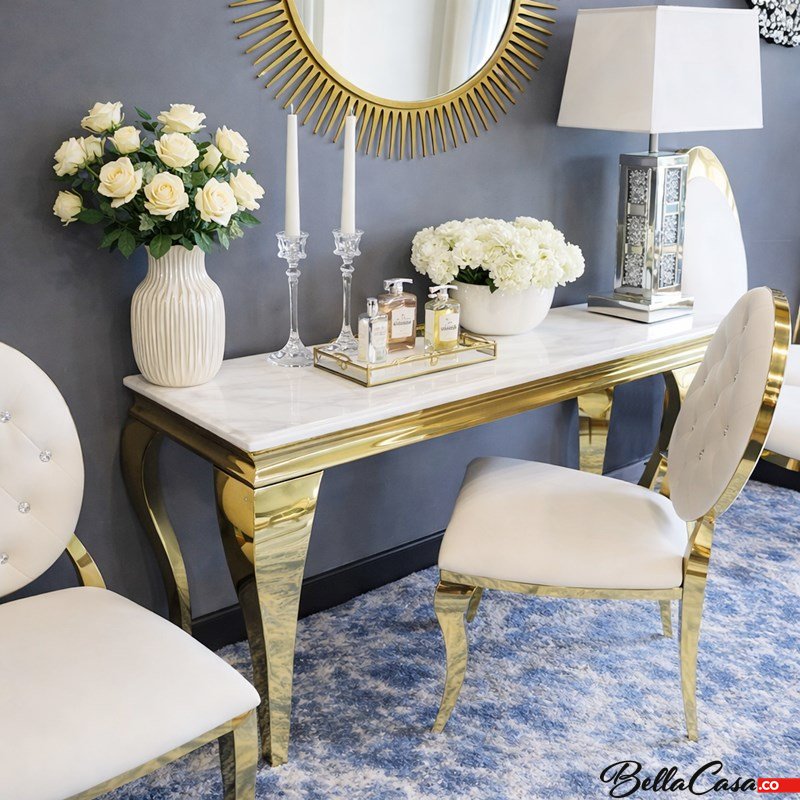 Barock Konsole Ludwik Gold - goldpolierter Edelstahl, moderne Steinplatte
