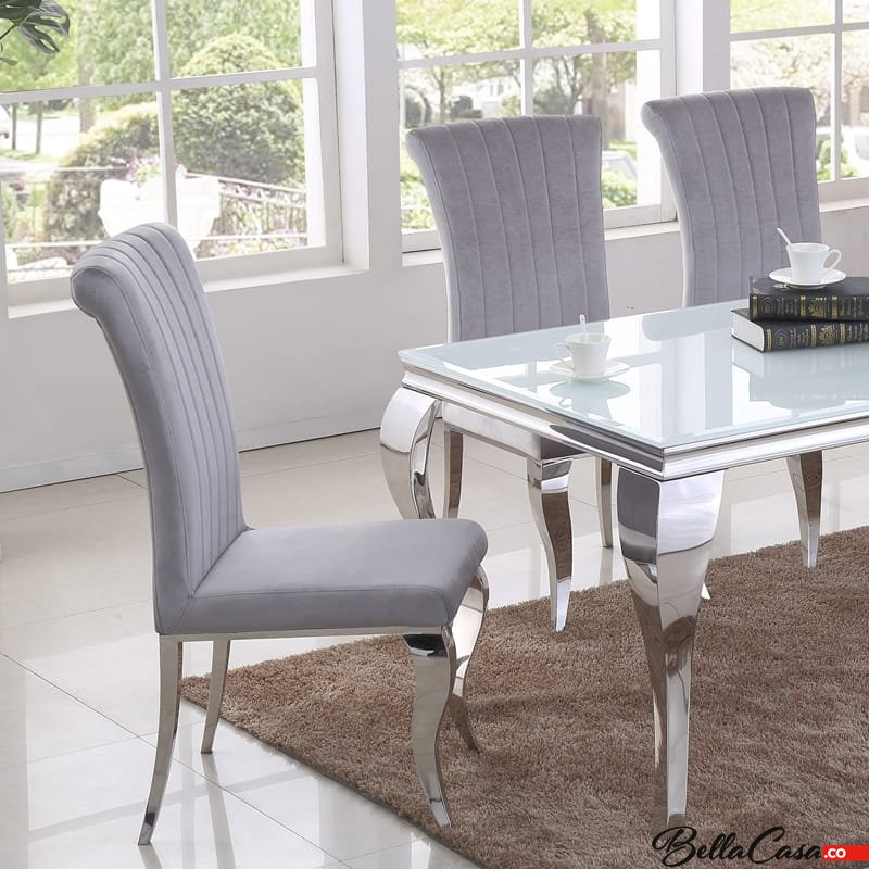 Glass tops perfectly complement the noble form of the base, while ensuring durability and comfort of use for years. This combination of steel and glass impresses both with its functionality and exceptionally original style.
