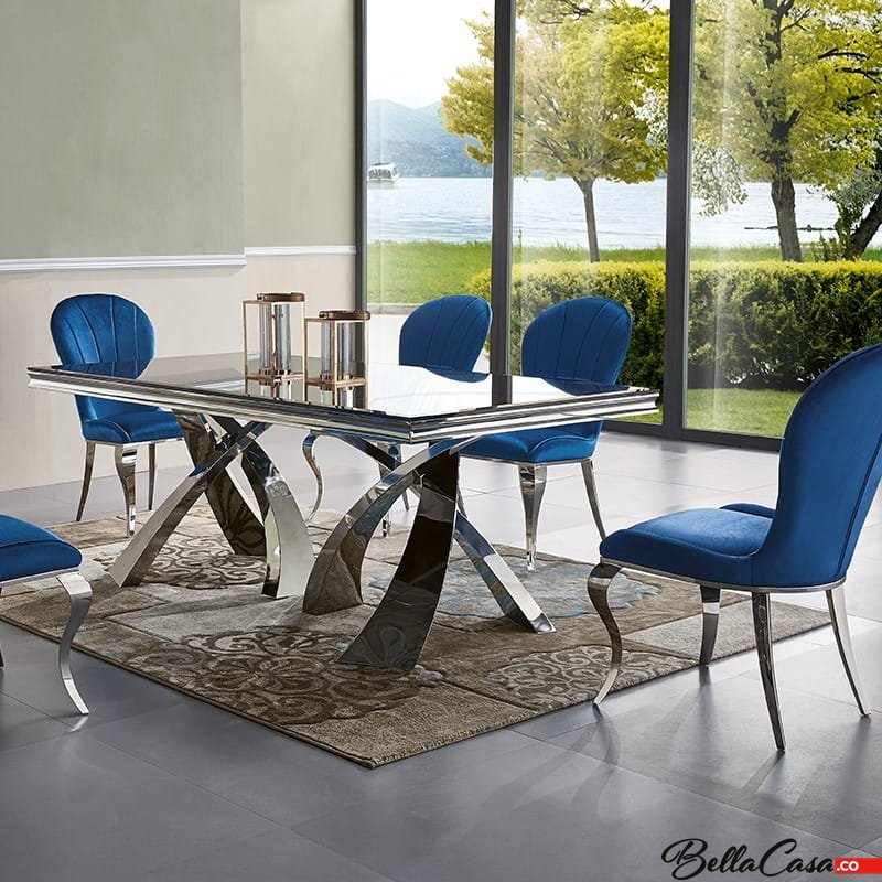 Rectangular Lincoln dining table in glamor style with a black glass top