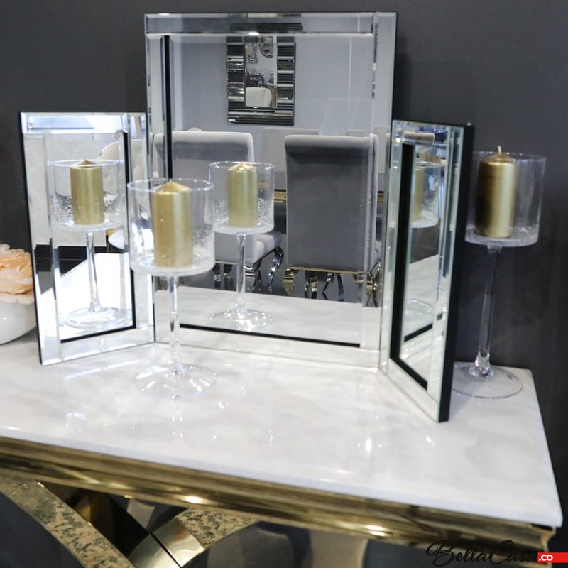 A triple mirror in a glamorous style that will look perfect on the dressing table.