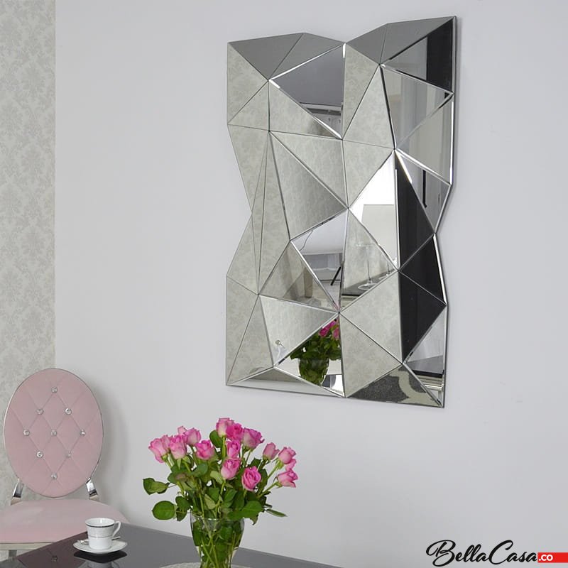 The mirror is composed of many triangular pieces, which connect into cones protruding from the glass, in which light and people and objects in the room are unexpectedly reflected. This extraordinary mirror resembling an ice sculpture is distinguished by its unique and outstanding design, being an extremely original and extraordinary decoration in our home. It will work in any room, and the interior will gain an exceptionally modern and unique look.