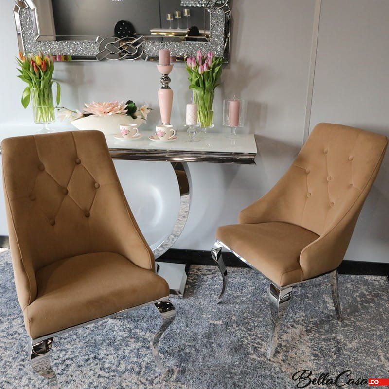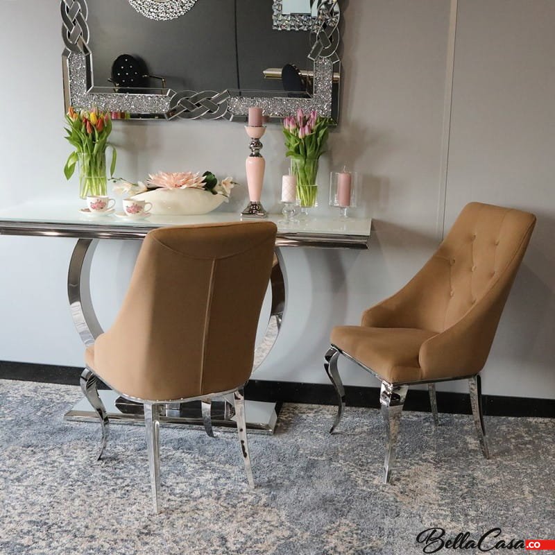 The William glamorous chair made of polished stainless steel is an excellent choice for those who value not only appearance, but also functionality and durability. It is not only a piece of furniture, it is also an expression of modern luxury and minimalist style. By adding it to your interior, you will emphasize its modern character and elegance.