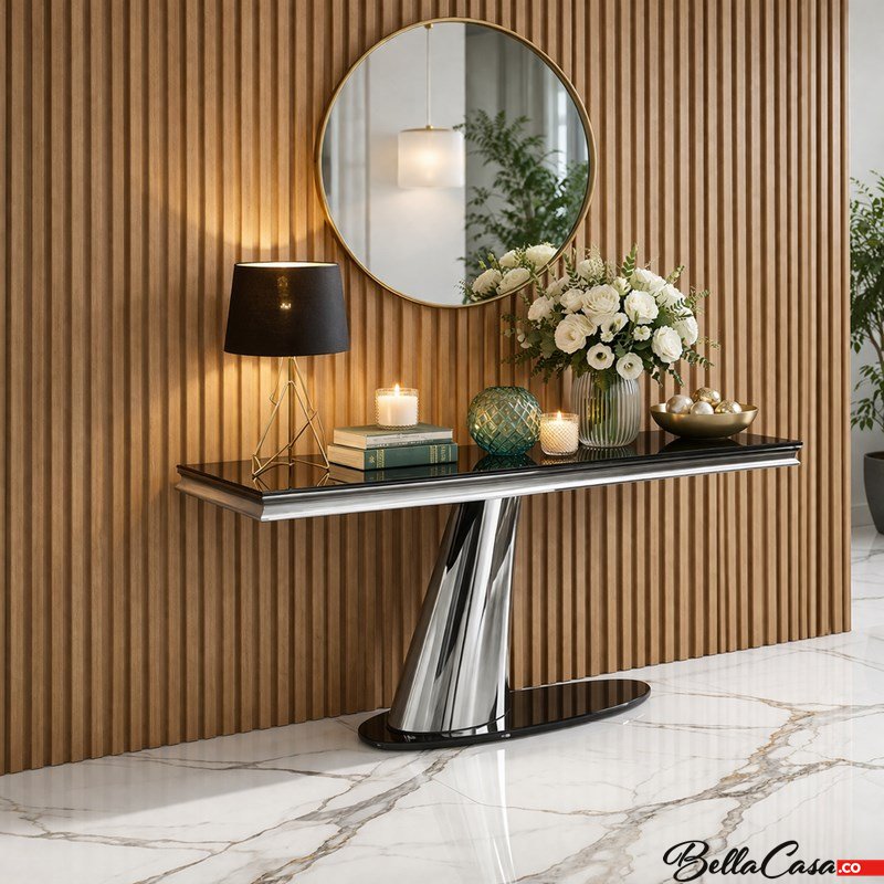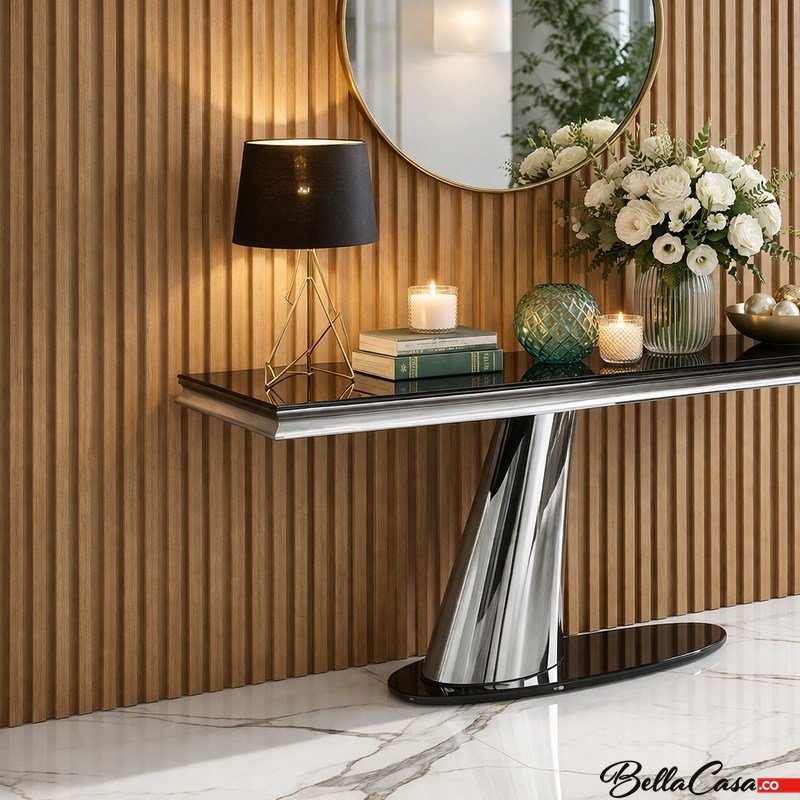 Konsola Dorado to wyjątkowy mebel, który łączy w sobie nowoczesny minimalizm z luksusowymi materiałami. Jego przemyślana konstrukcja sprawia, że stanowi nie tylko funkcjonalny element wyposażenia, ale również wyrazisty akcent dekoracyjny. Charakterystyczna, geometryczna podstawa wykonana z wysokiej jakości stali szlachetnej nadaje mu lekkości i elegancji, jednocześnie zapewniając stabilność i trwałość na lata.