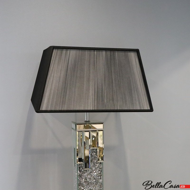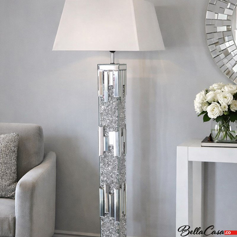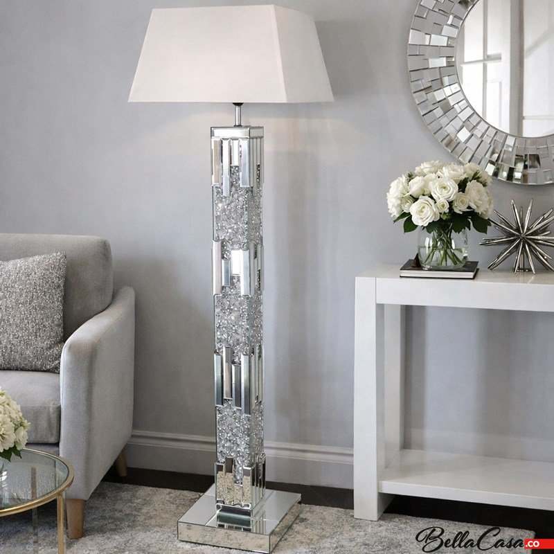 Lampa podłogowa glamour z lustrzaną podstawą i kryształkami