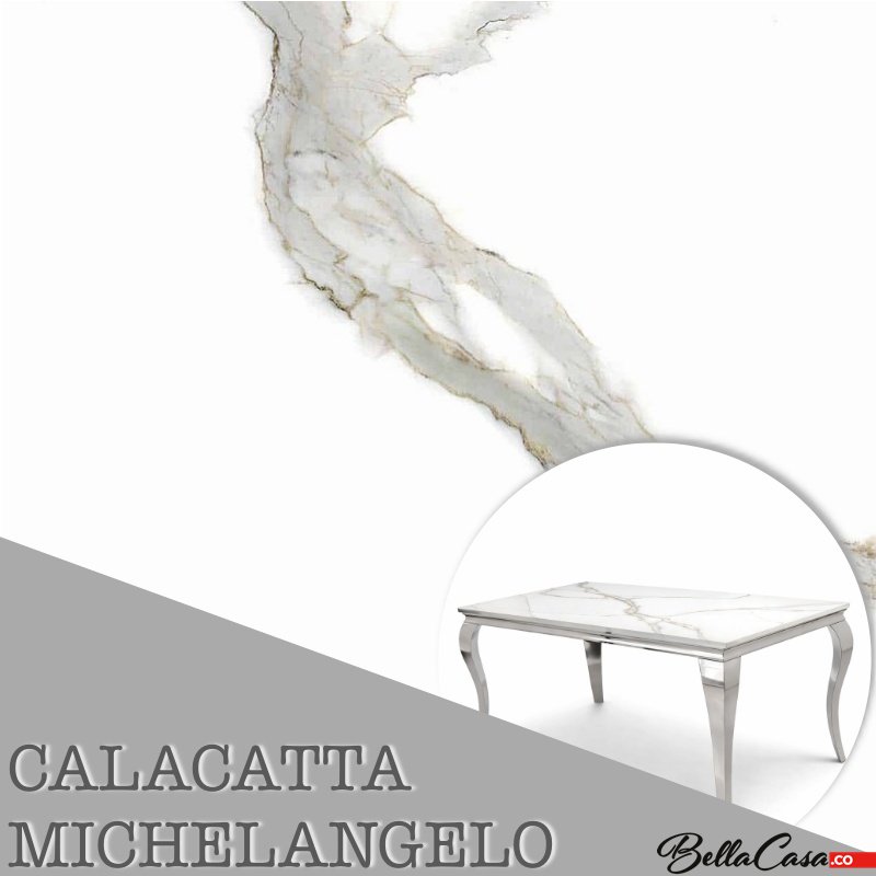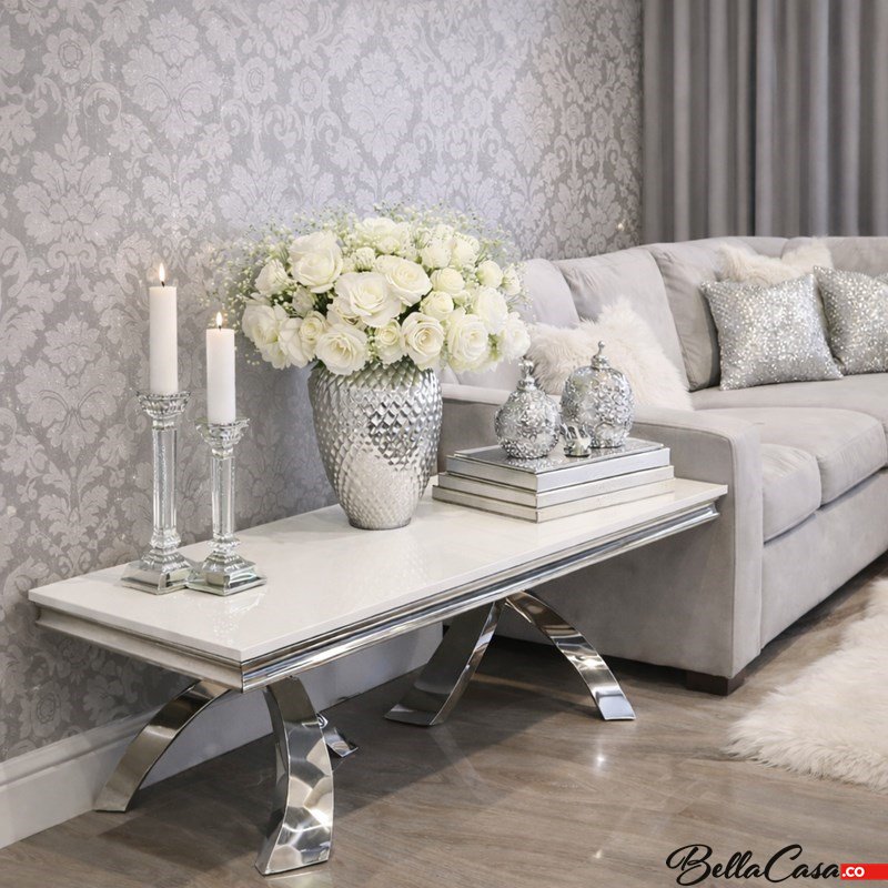 Ława glamour Lincoln, wykonana ze stali szlachetnej polerowanej w komplecie z blatem kamiennym do wyboru