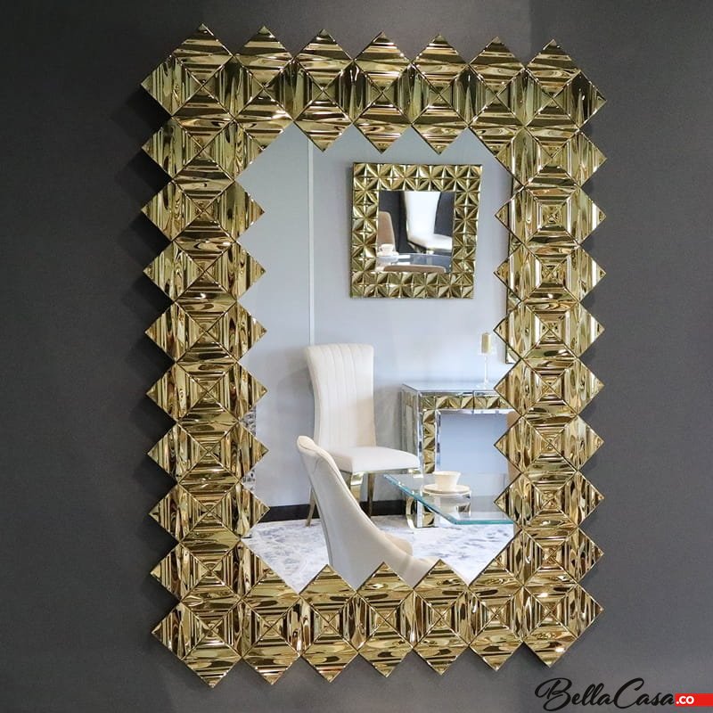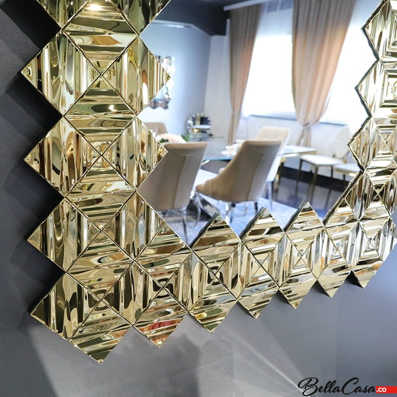 Szukasz dodatku, który doda Twojemu wnętrzu elegancji, klasy i designerskiego charakteru? Lustro dekoracyjne w złotej ramie to propozycja dla osób ceniących luksusowy styl i wyraziste detale. Jego niepowtarzalna rama o geometrycznym, trójwymiarowym wzorze sprawia, że lustro staje się nie tylko praktycznym elementem wyposażenia, ale również centralnym punktem dekoracyjnym pomieszczenia.