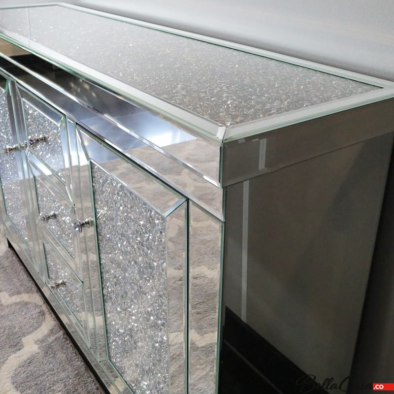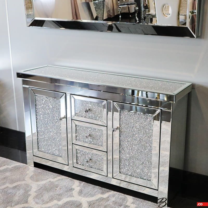 Lustrzana komoda glamour z kryształkami dla nowoczesnych wnętrz.