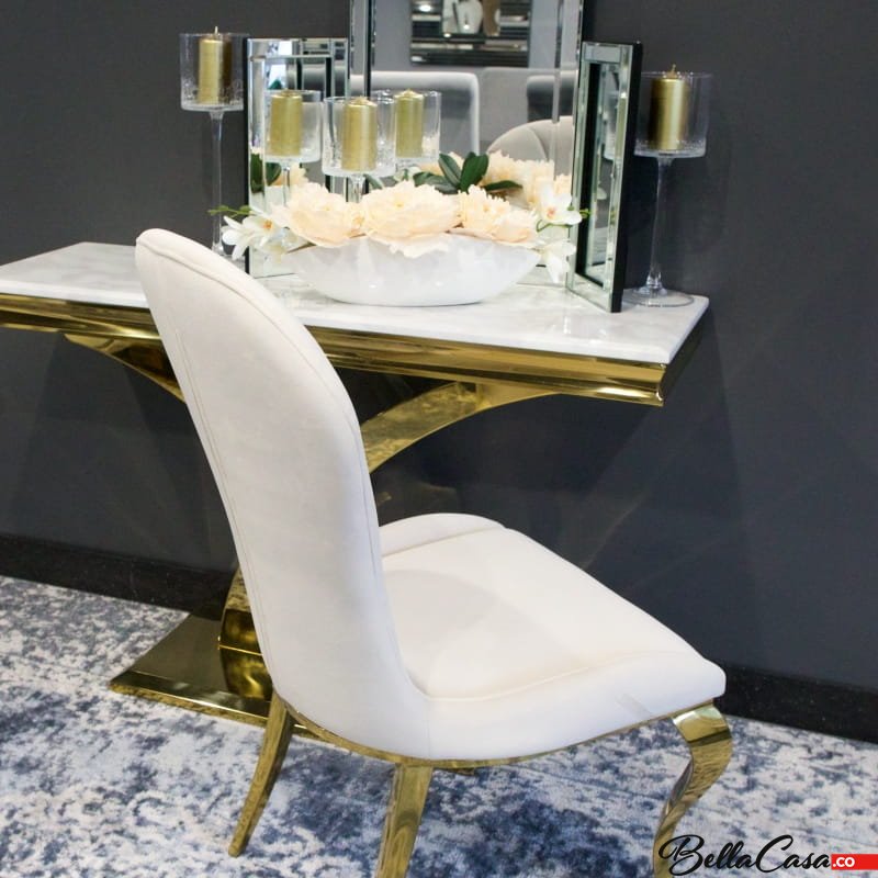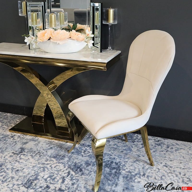 Krzesło glamour Tiffany Gold Beige - złote krzesło tapicerowane beżowe