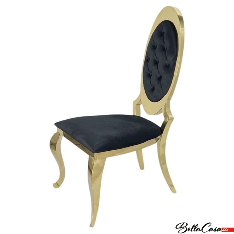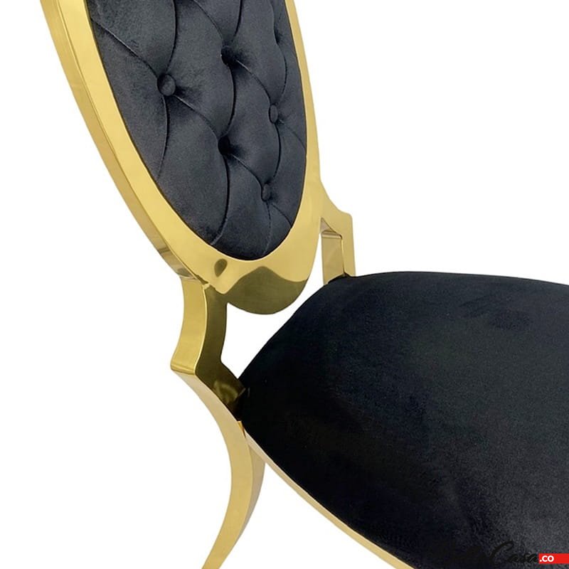 Krzesło glamour Victoria Gold Black - złote krzesło pikowane guzikami