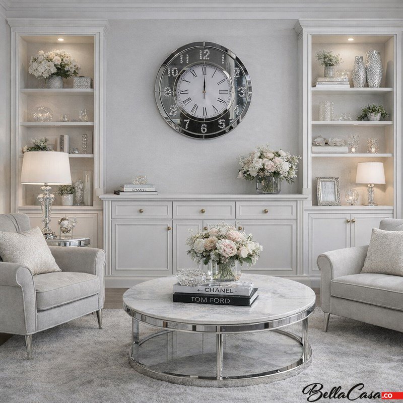 To doskonały wybór dla tych, którzy szukają stylowego zegara na ścianę łączącego design, błysk i klasę.
