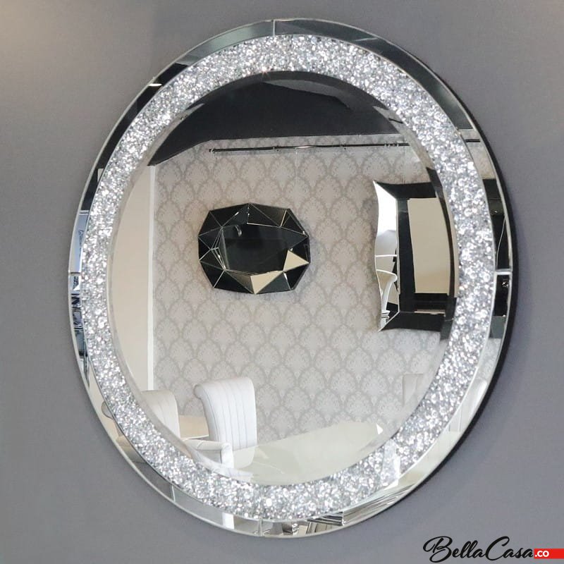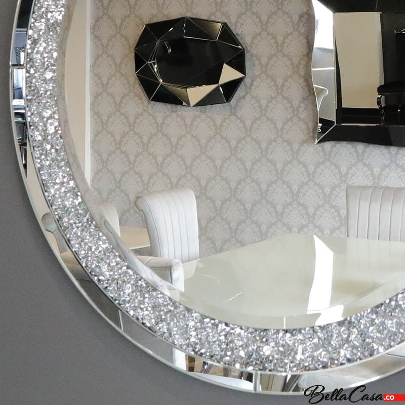Kryształowe okrągłe lustro ścienne w stylu glamour o wymiarach śr.90 cm