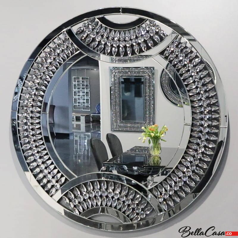 Kryształowe okrągłe lustro ścienne w stylu glamour o wymiarach śr.90 cm