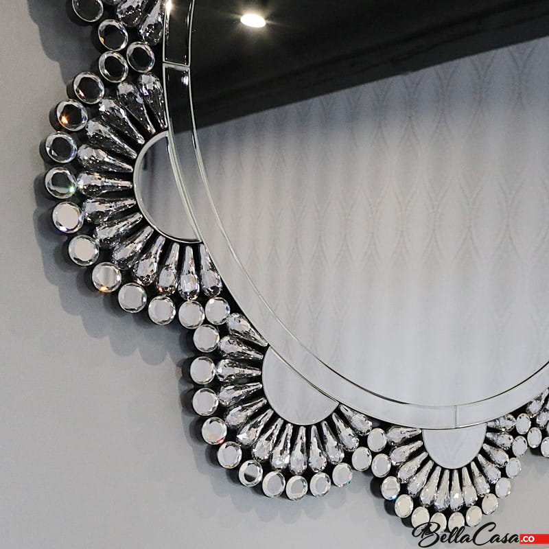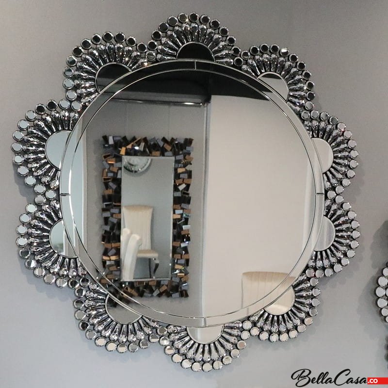 Srebrne lustro glamour okrągłe śr. 93 cm M-0535