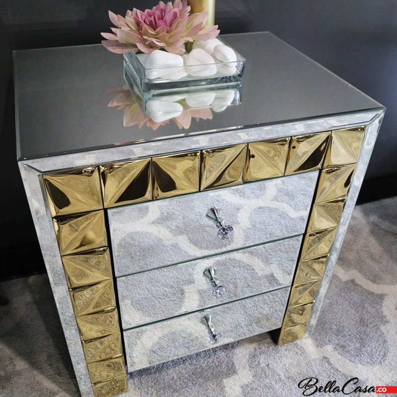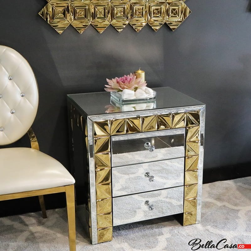 Szafka glamour z lustrzanym wykończeniem i złotymi detalami