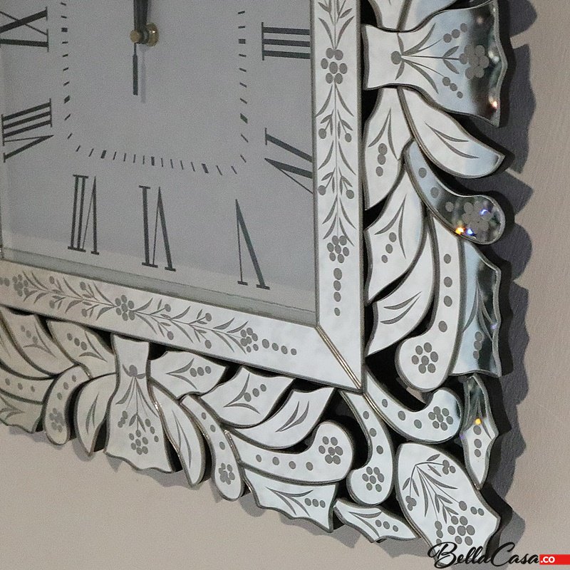 Zegar ścienny glamour to połączenie funkcjonalności i wyrafinowanego stylu, idealne dla osób ceniących eleganckie dodatki do wnętrz. Jego kwadratowa forma, lustrzana i dekoracyjna rama sprawiają, że staje się on nie tylko praktycznym czasomierzem, ale i efektowną ozdobą ściany. To nowoczesny zegar dekoracyjny, który doskonale wpisuje się w aranżacje w stylu glamour, nowojorskim czy współczesnym. Klasyczne, białe tło w połączeniu z lustrzanymi detalami rozświetla przestrzeń, dodając jej blasku i wytworności.
